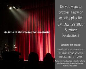 JM Drama Alumni is committed to providing opportunities for actors, production designers, and crew to further their skills and indulge their love of theatre by presenting two community theatre productions each year.